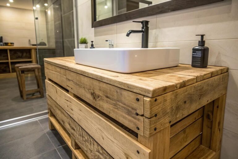 Looking to add some rustic charm to your bathroom without breaking the bank? Pallet wood is your new best friend, offering endless possibilities to transform your space with warmth and character. 1. Pallet Sink Splashback Transform your bathroom with a rustic pallet splashback—where modern meets craftsmanship. Add texture behind your sink with a pallet splashback. It’s a simple way to elevate the look without too much effort. These products might help: Wood Finish Sealer: Protect…