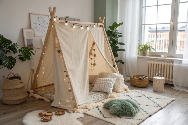 Who doesn’t love a cozy fort to escape the world for a bit? Whether for playtime or a peaceful retreat, building a fort can transform your space in the most delightful way. 1. Under-the-Table Fort Rediscover childhood magic with a cozy under-the-table fort—where whispers and dreams come to life. Transform a dining table into a secret lair by hanging sheets around the sides and adding pillows inside. This was my go-to spot for whispering secrets…