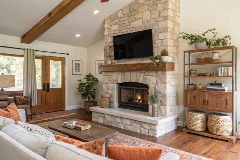 A stone fireplace paired with a TV creates a captivating focal point in any living room. Let’s explore some design ideas that blend aesthetic beauty with practical functionality. 1. Contrasting Textures Play with textures to add depth and character to your stone fireplace and TV setup. Experiment with contrasting textures by pairing smooth stone with rough wood. This tactile mix adds depth and interest to your design. Useful items to consider: Smooth Stone Veneer Panels:…