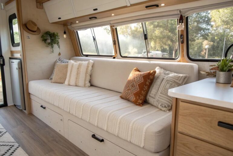 Transforming your RV into a cozy, functional space can be a fun and fulfilling project. Let’s explore some creative DIY sofa bed ideas that will make your RV both stylish and efficient. 1. Wooden Frameworks Transform your RV with a handcrafted wooden sofa bed—where rustic meets elegance in every grain. Build your sofa bed with a wooden framework for a rustic and sturdy feel. This DIY project was a game-changer in my RV, offering durability…