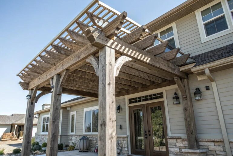 Imagine stepping onto your front porch and being greeted by a beautiful pergola that instantly elevates your home’s curb appeal. A pergola not only adds architectural interest but also creates a cozy outdoor haven to enjoy year-round. 1. Pergola with Slatted Roof Embrace the perfect blend of sun and shade with a sleek slatted roof pergola. A slatted roof offers just the right amount of shade while maintaining an airy feel. It’s a perfect compromise…