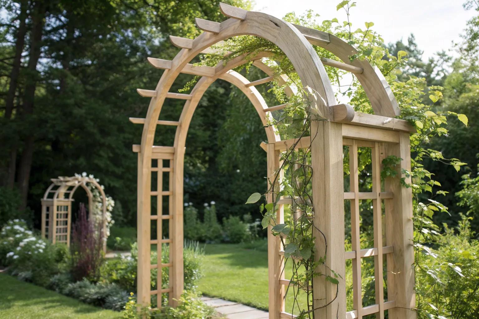 - Outdoor Wooden Arch Trellis: Construct a sturdy foundation for your grapevines with this elegant outdoor wooden arch trellis.
