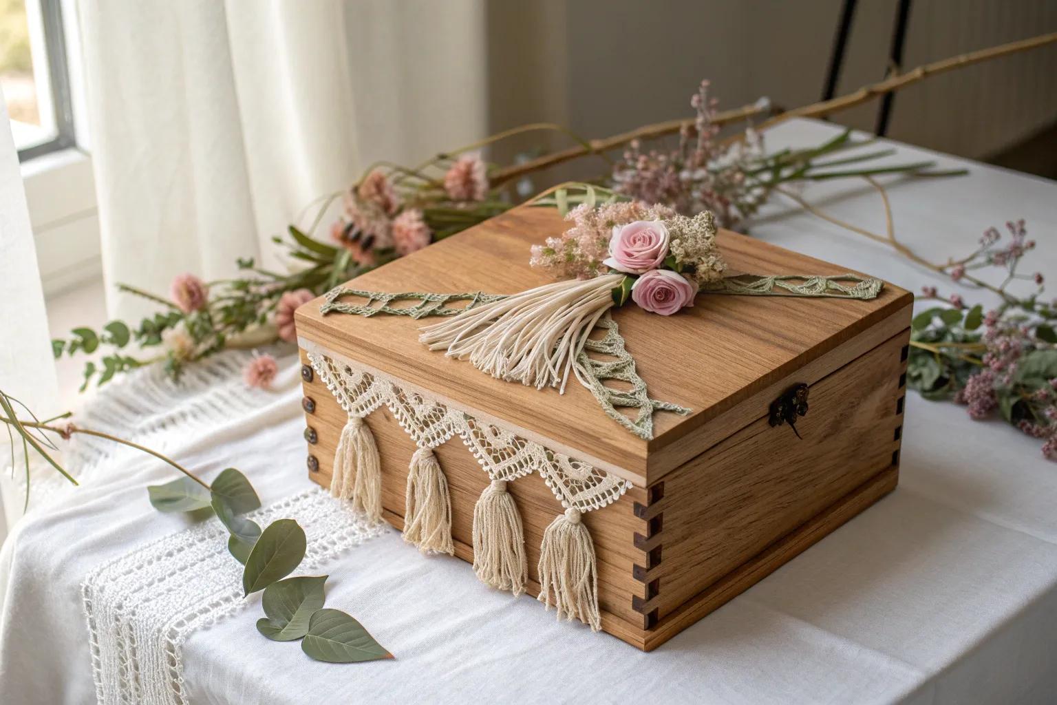 - Decorative Lace Trim: Enhance elegance with decorative lace trim for your wooden box. Explore charming designs today!