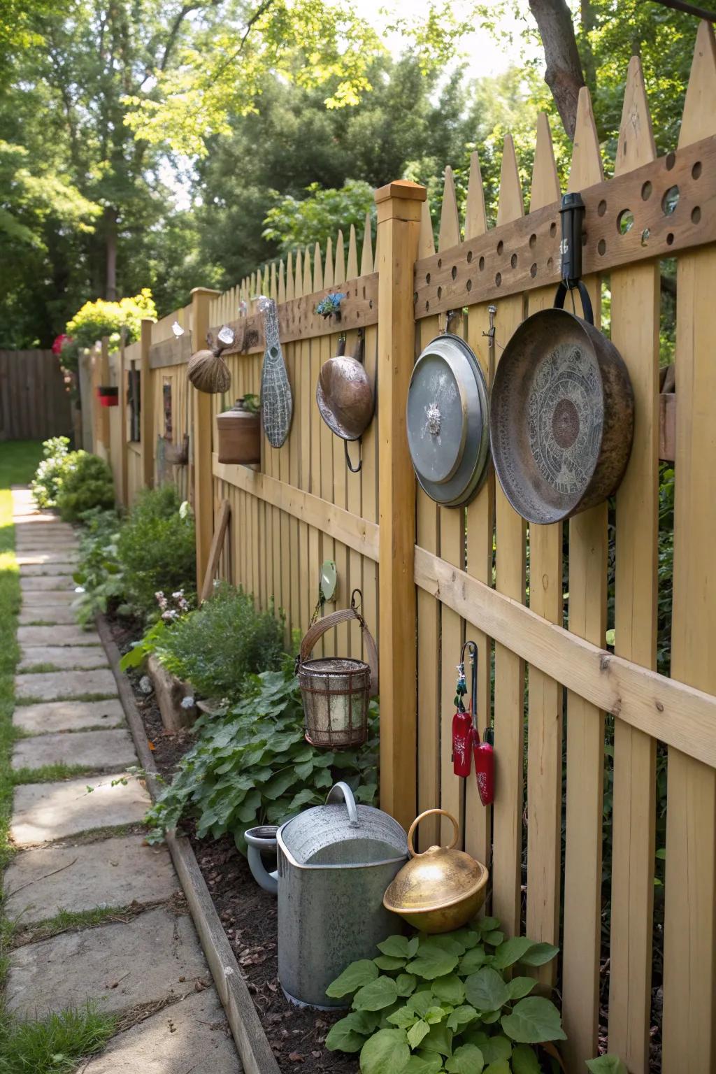 Create a musical fence by attaching pots, pans, and other sound-making items to a section of your fence. The symphony of sounds that my kids create always brings a smile to my face.