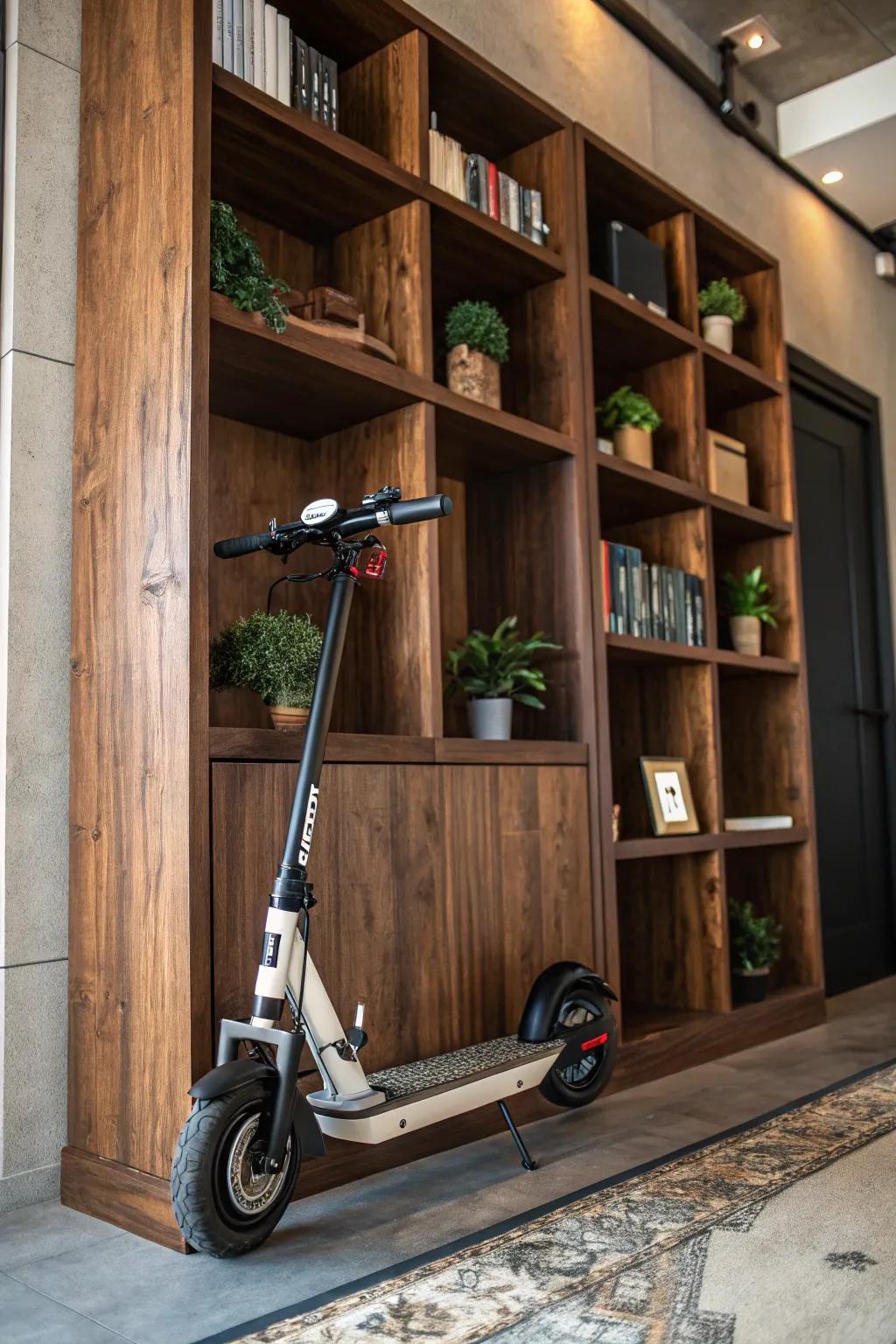 Incorporate your scooter into existing shelving for a seamless look. I love how this blends function with style in my own space.