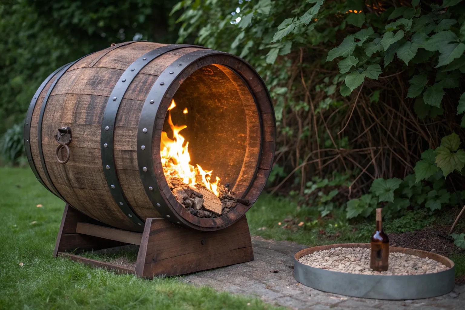 Ignite your evenings with a handcrafted fire pit from an upcycled metal barrel.
