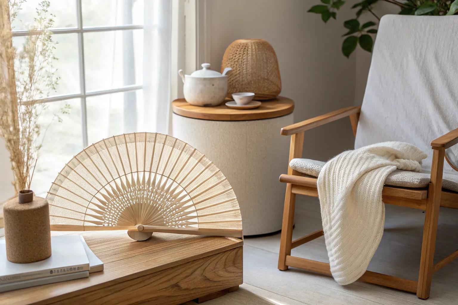 • Wooden Folding Fan: Add sophistication with a wooden folding fan, perfect for a classic and refined decor touch.