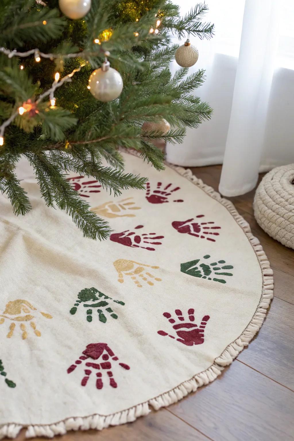 - Fabric Christmas Tree Skirt: Create a memorable keepsake with a plain tree skirt to capture your toddler’s growing handprints.