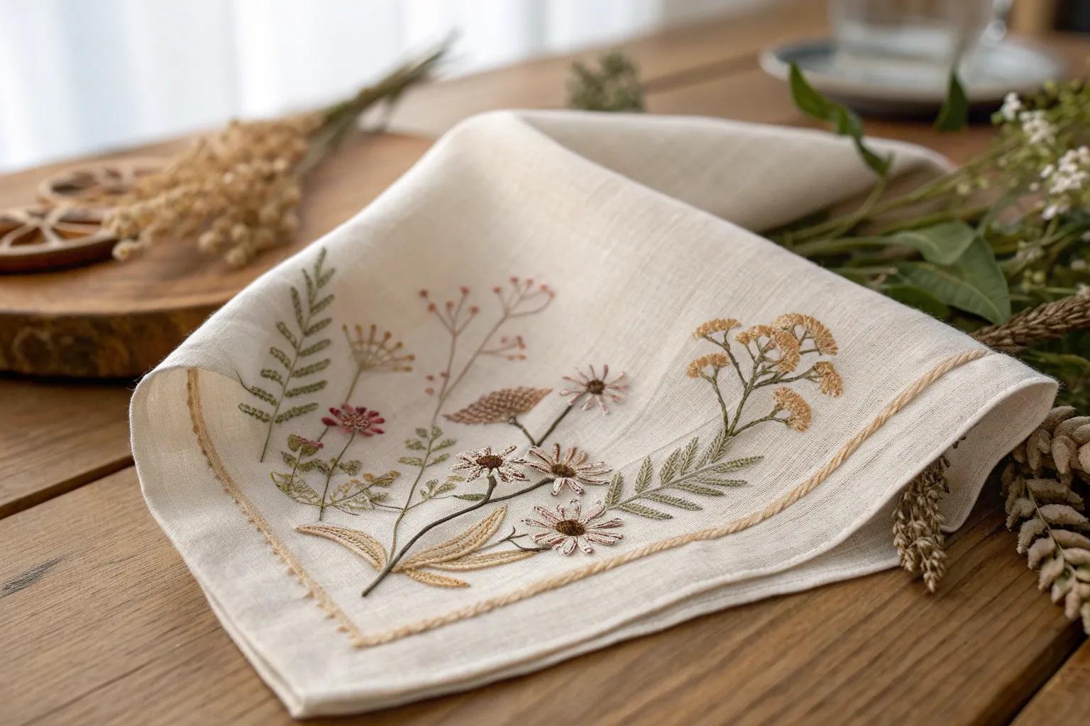 A touch of embroidery can turn any handkerchief into a work of art. I love creating floral or nature-inspired patterns; they add a personal touch and make each piece one-of-a-kind.