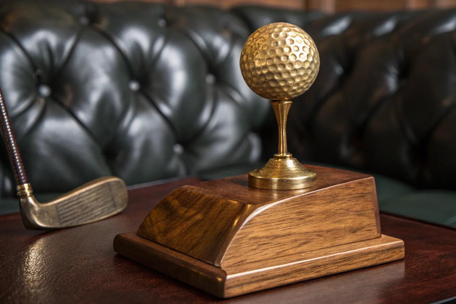 Use a vintage-style golf ball for a trophy that has an old-school charm. Pair it with a simple wooden base for a timeless look.