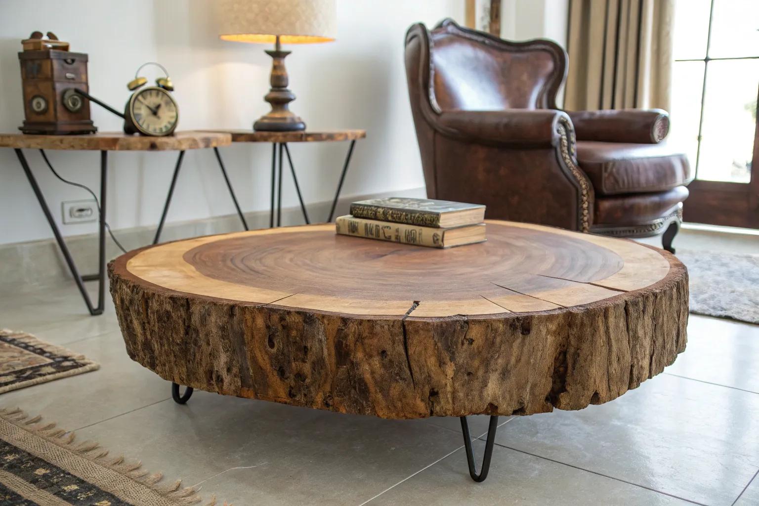 Rustic elegance meets modern design: A wood slice table that’s sure to be a conversation starter.