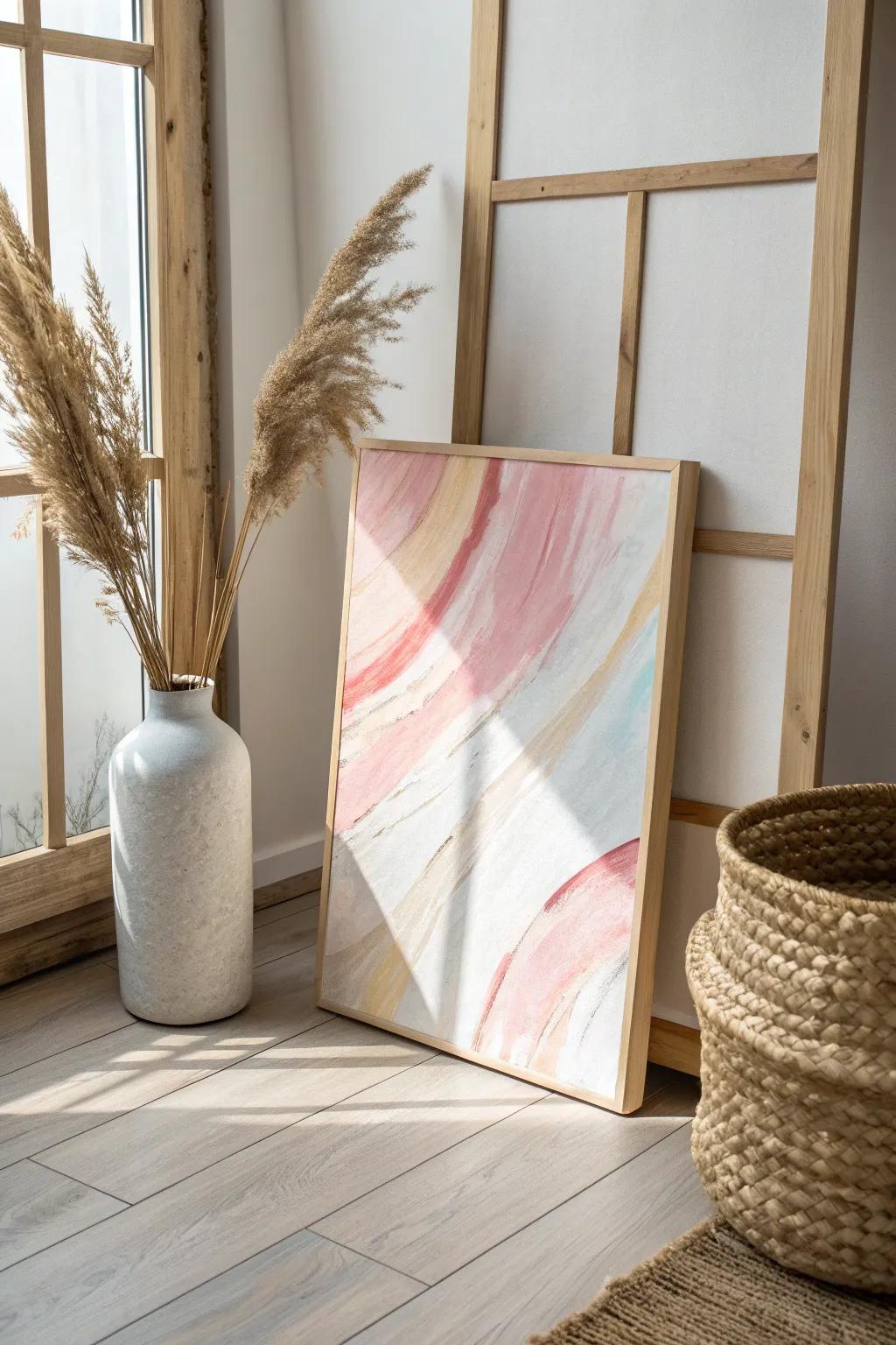 Experiment with an abstract piece using bold brush strokes and unexpected color combinations. This is my go-to when I’m feeling spontaneous and want my room to reflect that energy.