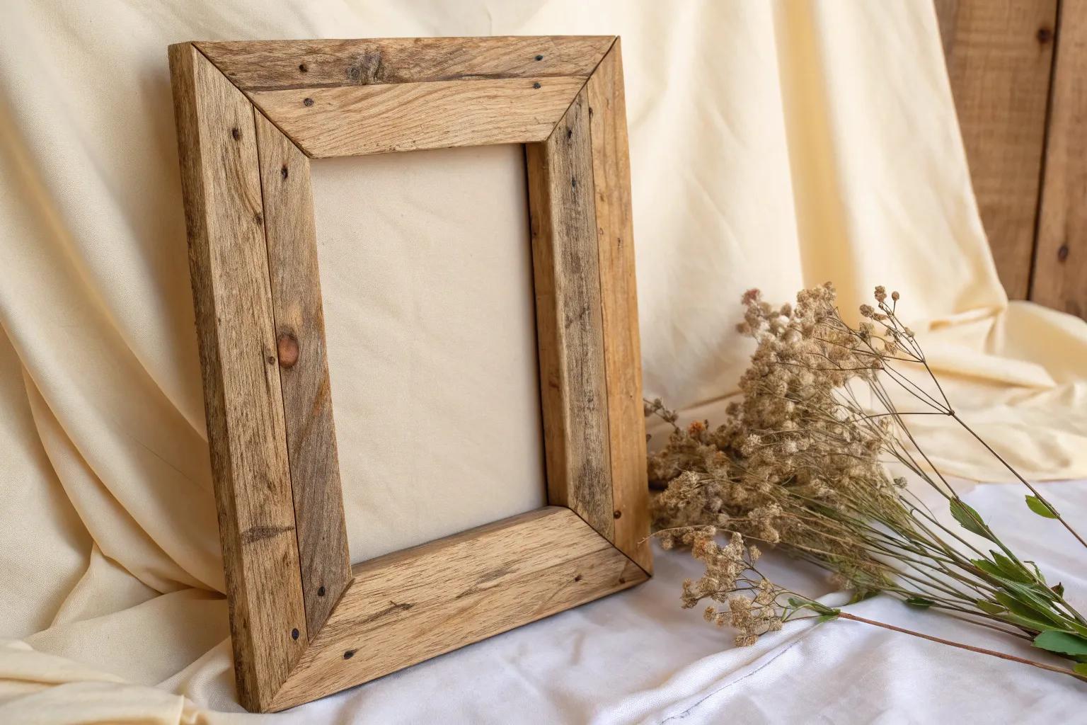 Add natural elements like twine or dried flowers to your frame for an earthy vibe. These little additions bring a touch of the outdoors inside, enhancing the natural beauty of the wood.