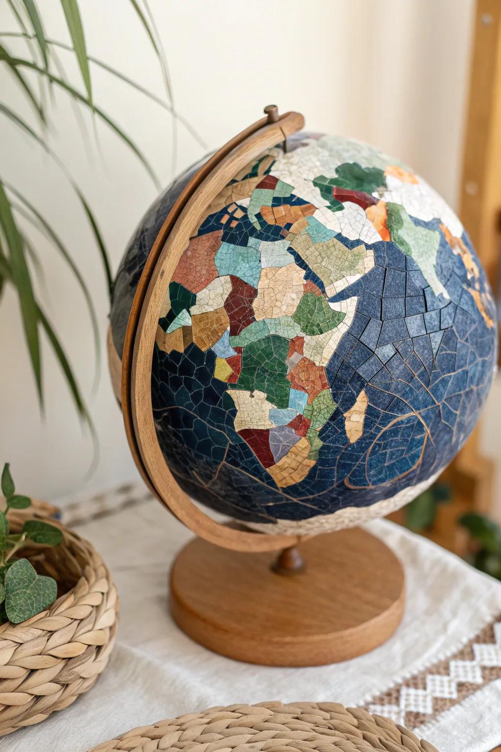 Collect bits of colored paper or tiles to craft a mosaic Earth. The fragmented pieces come together beautifully to form a whole, much like our diverse world.