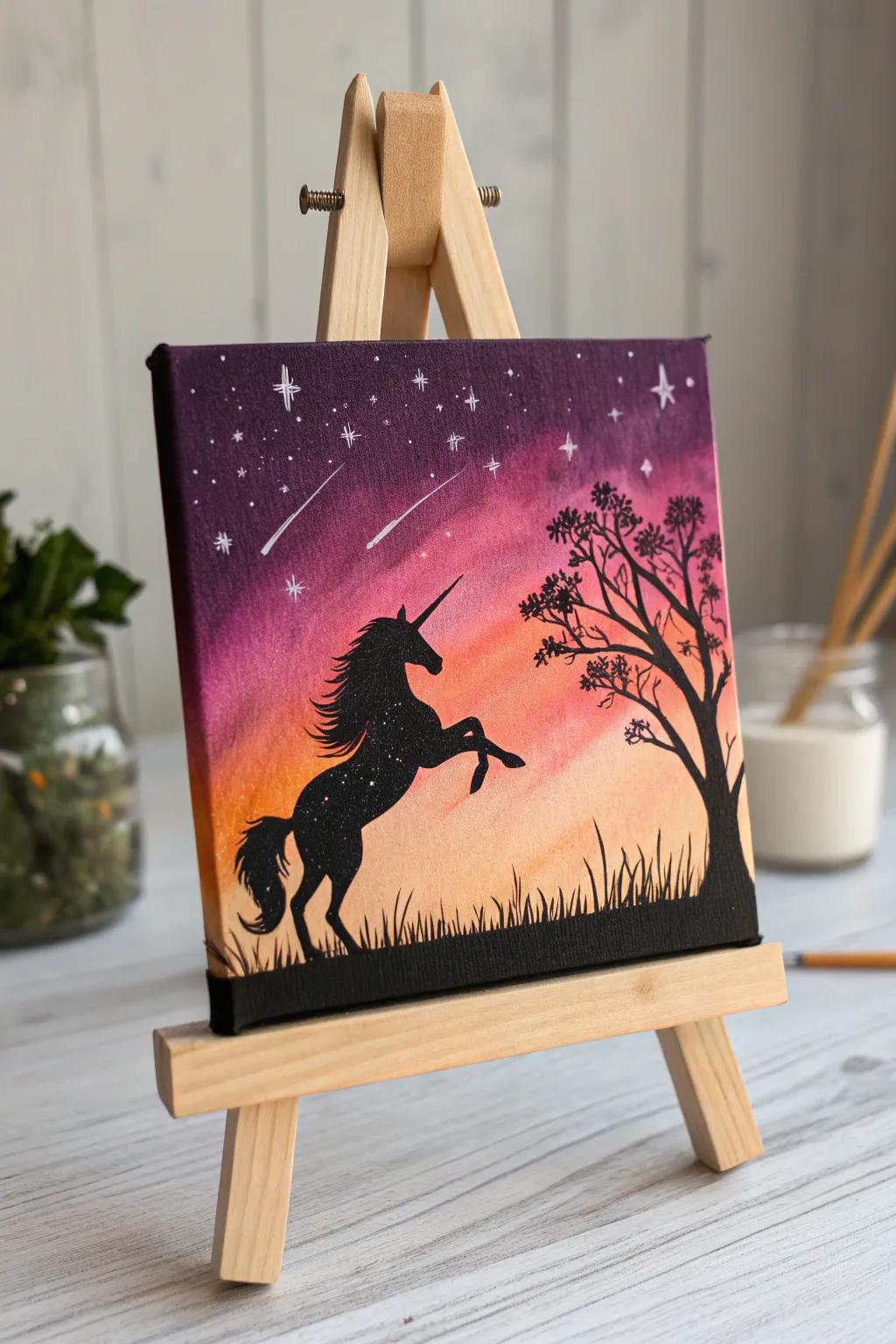 For a touch of enchantment, try a fairytale scene silhouette. I once painted a unicorn under a rainbow sky, and it never fails to bring a smile to my face.