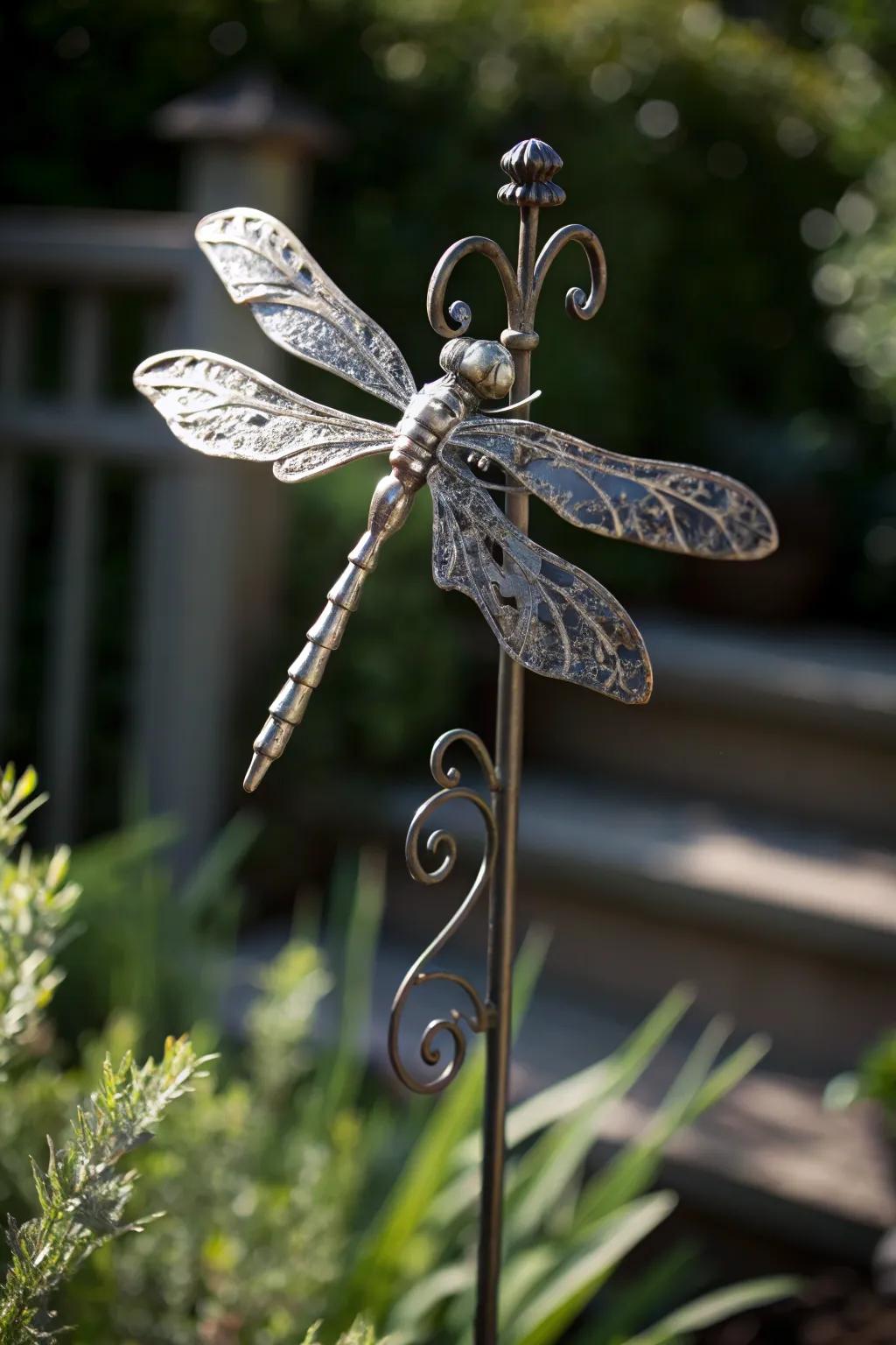 Enhance your garden with whimsical metal stakes. I’ve made stakes in the shape of dragonflies and butterflies, and they dance in the wind.