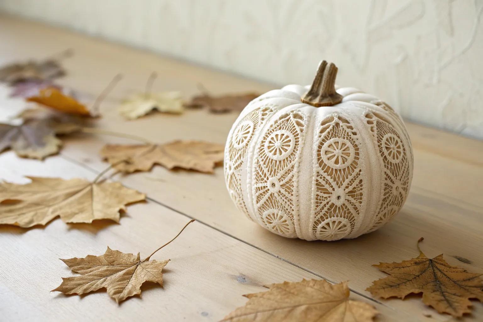 Carve delicate autumn leaf patterns into your pumpkins, letting the light shine through the intricate designs. I find this brings a warm, natural touch to any setting.